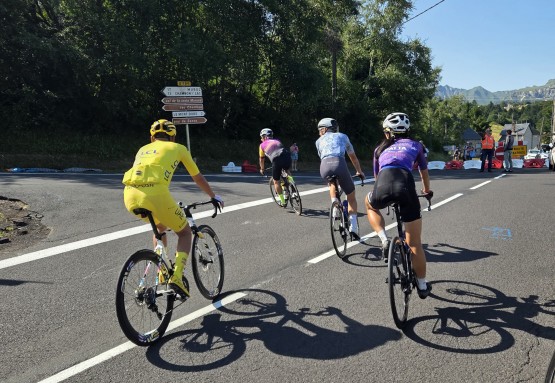 fter a transfer from Royat, we will reach our start point for our ride on a Tour de France stage. A few kilometers after the start, you be provided with a great warm up: cote de Murat (6,5 km @4 %), after a quick downhill you will face your 2 “Main courses” : Col du Puy Marie (CAT2 , 11 km @ 4,5 %) & Col de Pertus (CAT 4, 4 km @ 8,4 %).While you are suffering, the cheering of fellow riders and spectators will ease the pain..You may wonder “Am I wearing the “Maillot Jaune“? After your effort, you will join BéloVélo team at a strategic race position, where you will recover (food & beverage)to enjoy the exceptional Le Tour atmosphere. Gathering goodies from the advertising caravan will the perfect pass-time before savouring the pros' effort. Try to grab a bidon, as only a few KM will separate the peloton from the finish line : Priceless